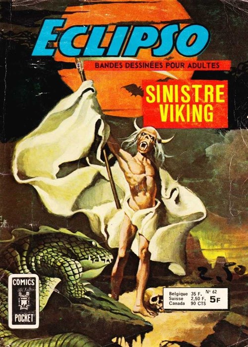 Sinistre viking est un album publié par les éditions Arédit - Artima dans la collection Eclipso - Pocket NB portait le numéro 62. A sa sortie, l'album affichait un prix de 5 Frs. Il parut dans les kiosque en Janvier 1978.