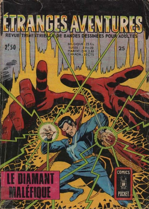 Le diamant maléfique est un album publié par les éditions Arédit - Artima dans la collection Etranges Aventures portait le numéro 25. A sa sortie, l'album affichait un prix de 2,5 Frs. Il parut dans les kiosque en Mai 1972.