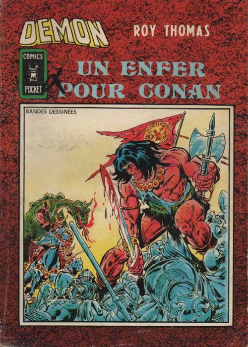 Un enfer pour Conan est un album publié par les éditions Arédit - Artima dans la collection Démon - Comics Pocket - Serie 1 portait le numéro 18. A sa sortie, l'album affichait un prix de 6 Frs. Il contenait 130 pages parut dans les kiosque en Juin 1982.